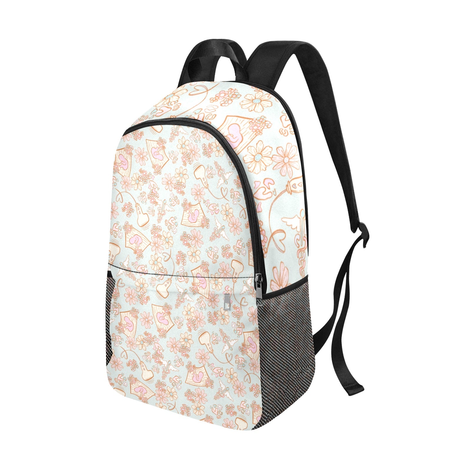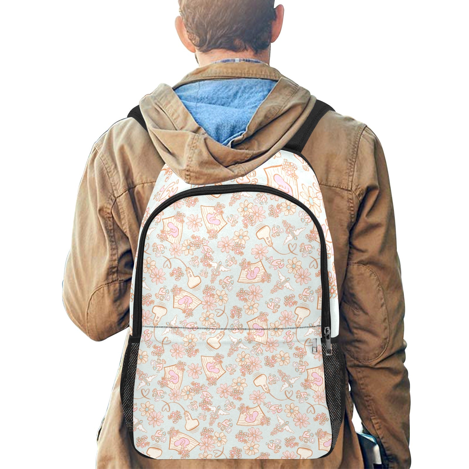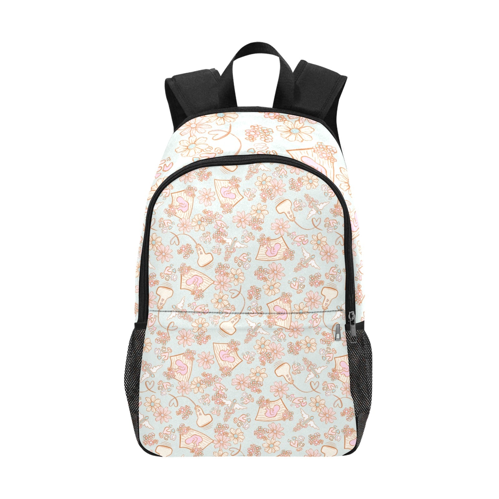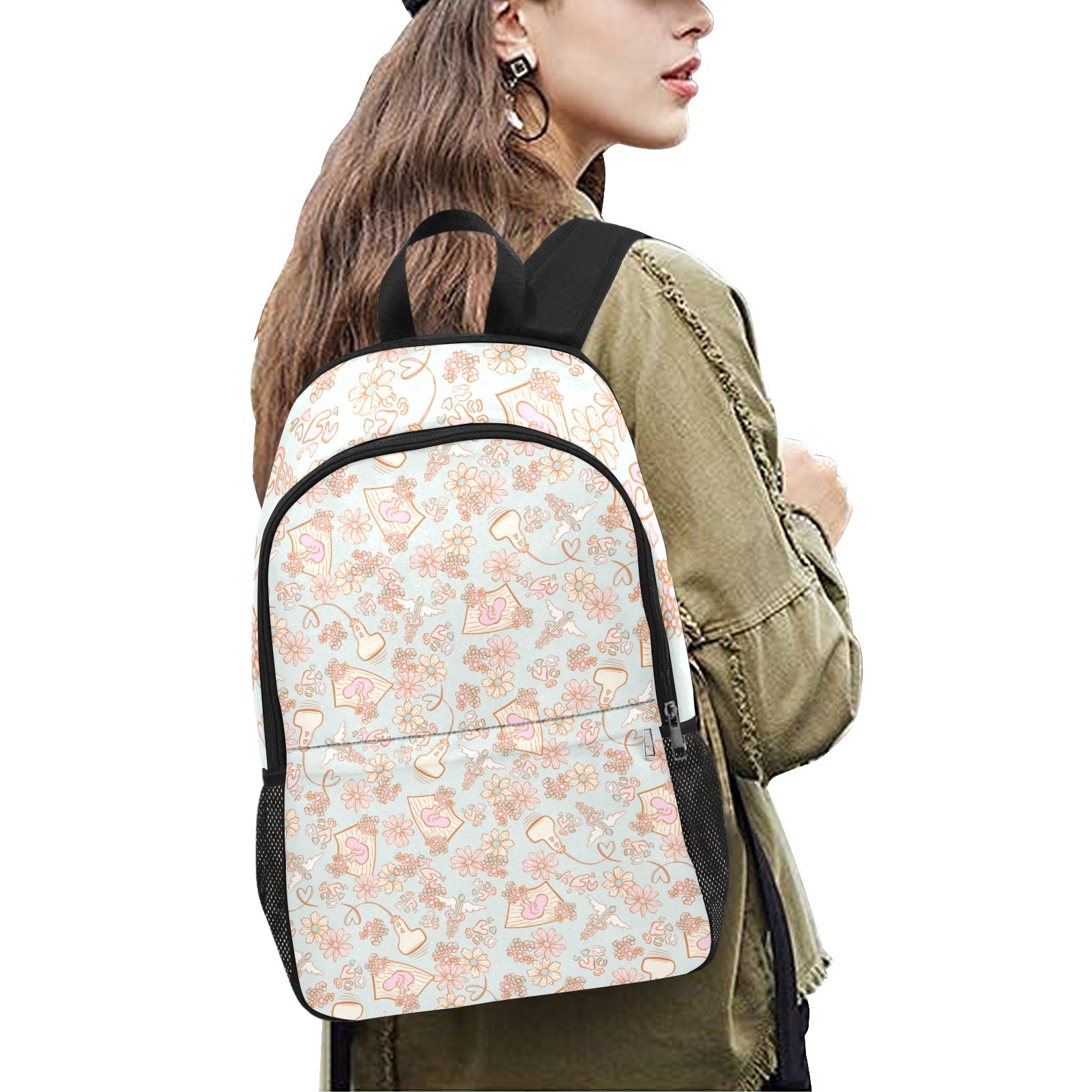 Get ready to rock your style and stay organized with our Healthcare-Themed Fabric Backpack with Side Mesh Pockets!