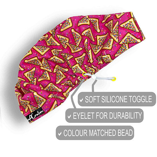 Our scrub hats feature a soft silicone toggle for easy adjustments and are made from vibrant, fun-patterned fabrics designed to brighten your day. Measuring 70cm around the brim with a height of 11cm.