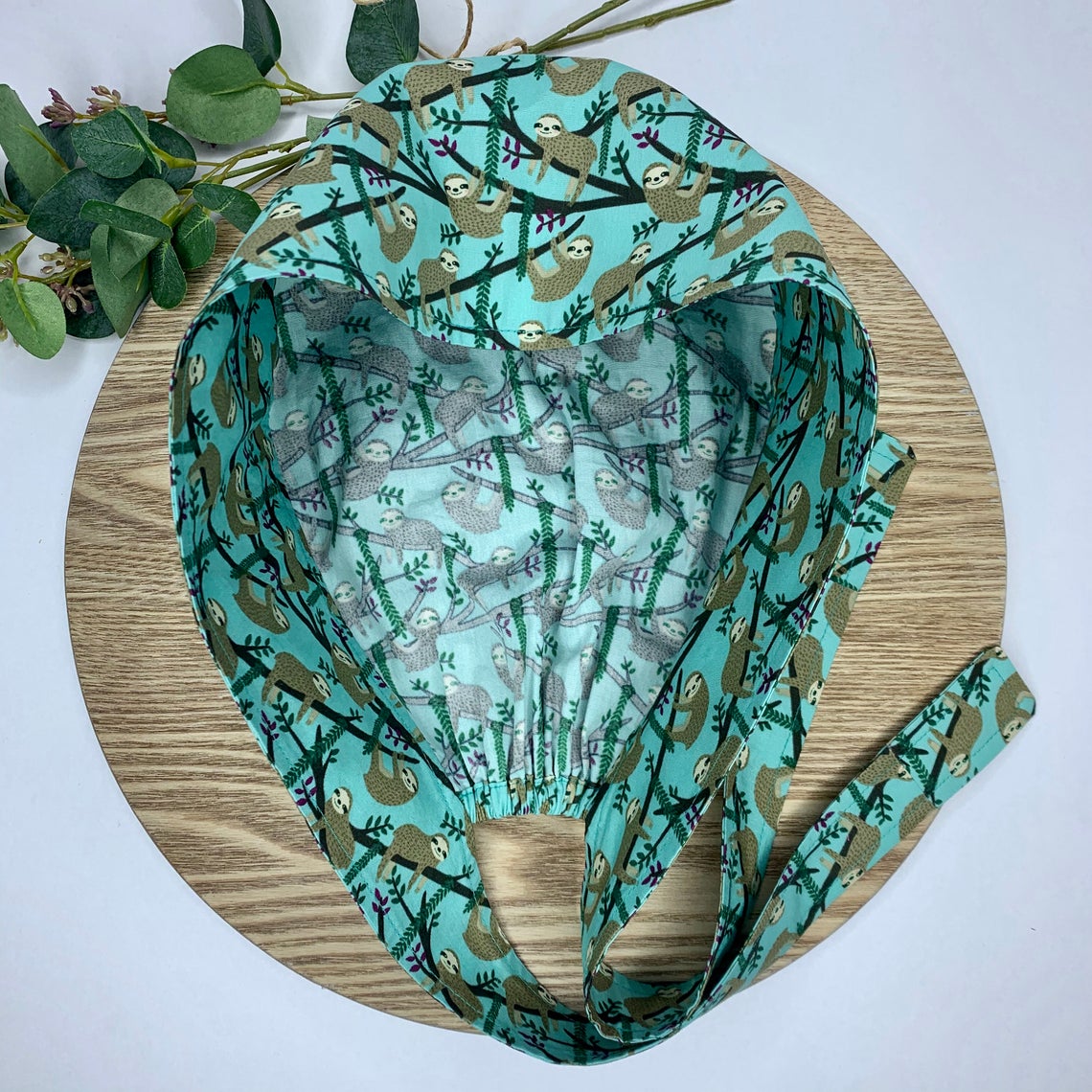 The scrub caps measures 60cm around and has long ties and elastic at the back for additional width so will fit most head sizes and women with long hair.