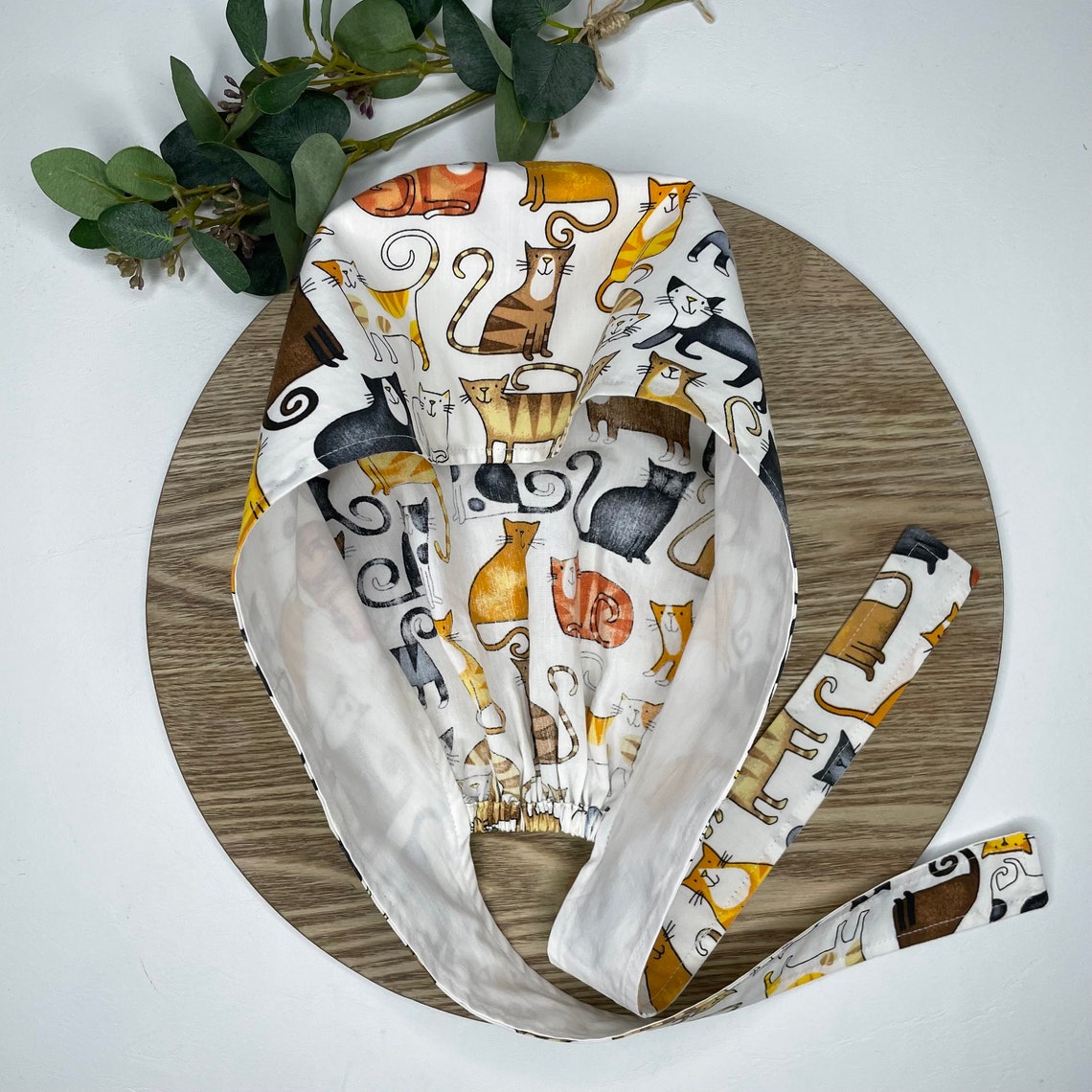 The scrub caps measures 60cm around and has long ties and elastic at the back for additional width so will fit most head sizes and women with long hair.