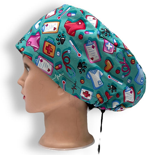 Our scrub hats feature a soft silicone toggle for easy adjustments and are made from vibrant, fun-patterned fabrics designed to brighten your day. Measuring 70cm around the brim with a height of 11cm.