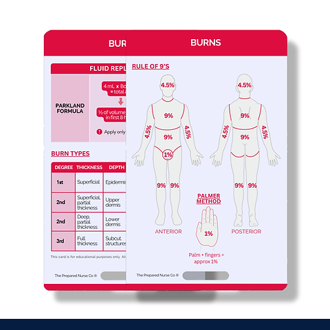 This essential badge card covers all the fundamental concepts you need to know about burns, helping you to quickly assess your patients when time is critical!