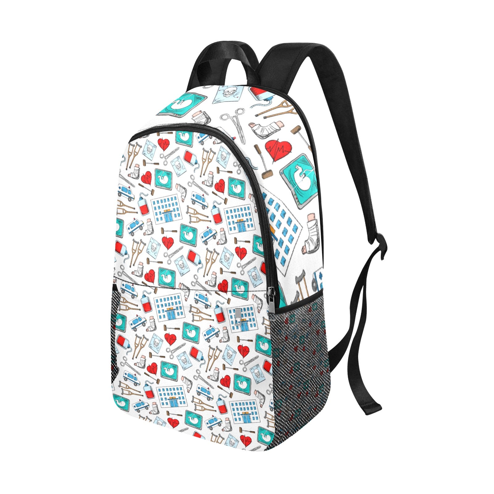 Get ready to rock your style and stay organized with our Healthcare-Themed Fabric Backpack with Side Mesh Pockets!